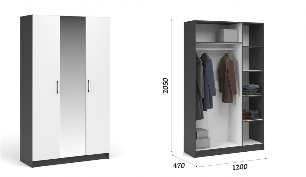 Paзмep: Ш 1200*В 2050*Г 470 мм