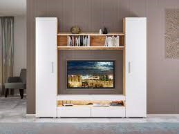 Тумбы под ТВ может быть укомплектована подсветкой, которая эффектно смотрится в интерьере и подчёркивает широкую нишу, свободную от перегородок.