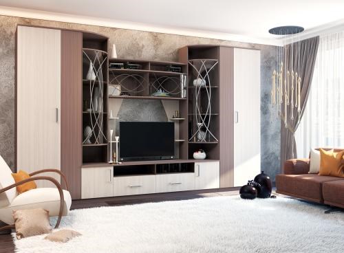 - В гостиной "Атланта" строгость линий разбавляется симметричным витражным рисунком, который создает настроение и придает всей композиции элегантную индивидуальность.