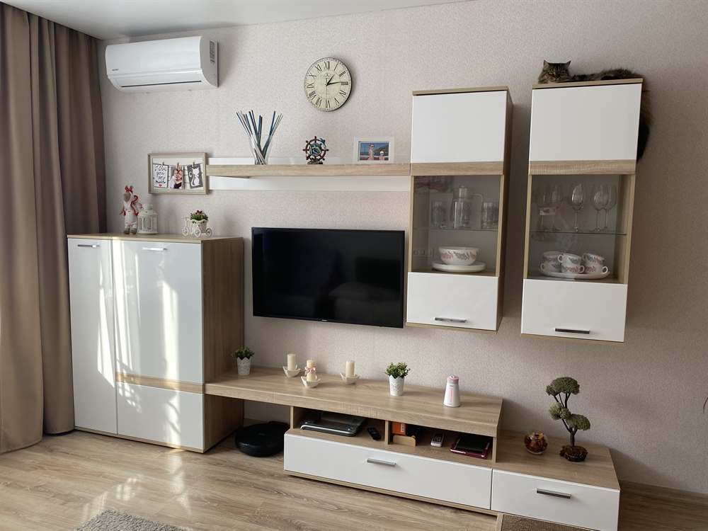 Размер ниши под ТВ регулируемый — он может меняться в зависимости от расположения навесных элементов.