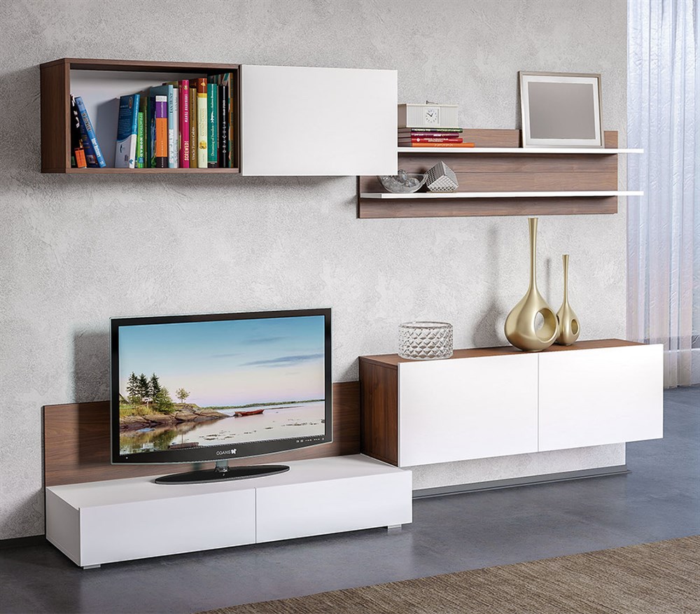 Стильное и функциональное модульное решение для гостиной в современном минималистичном стиле.