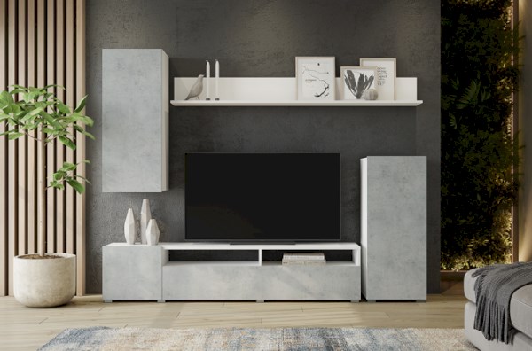 Небольшая, но функциональная гостиная "Лира" с белыми глянцевыми фасадами в современном стиле.