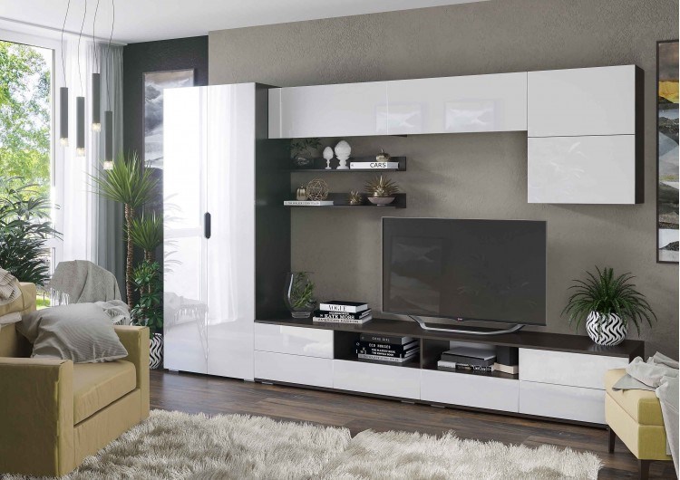 Стенка-горка Лия-2 включает в себя нишу под ТВ с открытыми и закрытыми полками для размещения приставок, медиа-устройств, книг и элементов декора.