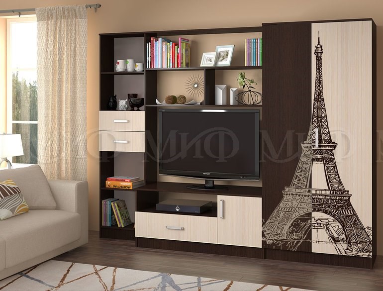 Простая и гармоничная гостиная с фотопечатью "Эйфелева башня" станет достойным украшением любого интерьера.