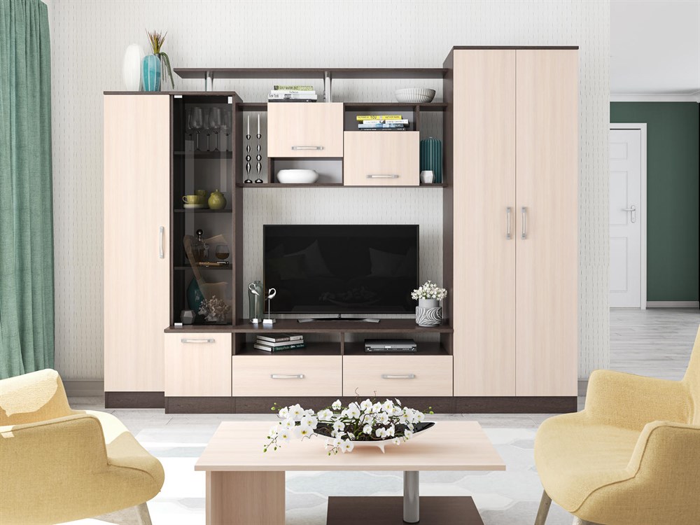 - Продуманное цветовое решение, гарантирующее совместимость гостиной с практически любым современным интерьером;