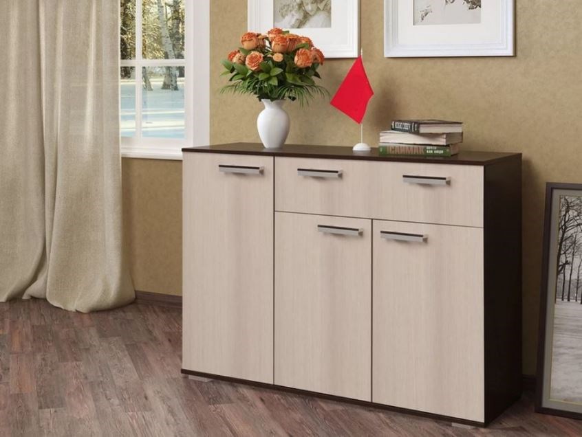 Компактный, практичный и функциональный комод «Стандарт 4» является идеальным вариантом для оформления небольших комнат, а также номеров в отеле. Комод имеет несколько закрытых секций, а также широкий выдвижной ящик в верхней части комода.
