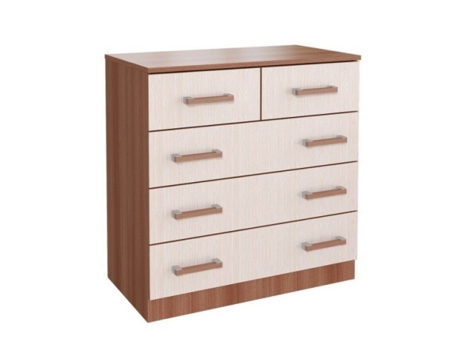 Практичный, компактный и функциональный комод «Стандарт 5» состоит из пяти выдвижных ящиков различной вместимости. Модель оборудована тремя большими и двумя ящиками меньшего размера. Оригинальность этой модели придает разделенный на две равные части верхний ящик. Поверхность комода можно использовать в качестве подставки под телевизор, или украсить декором.