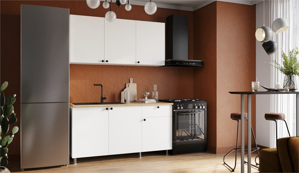 В комплект кухни не входит и приобретается отдельно: мойка, стеновая панель (фартук), сушка для посуды.