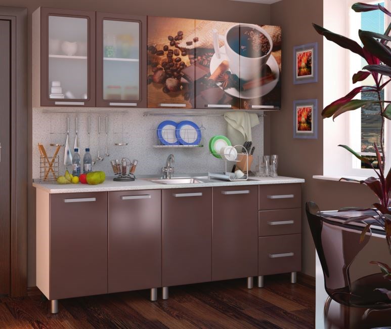 Кухонный гарнитур «Люкс Шоколад» комплектуется столешницей «Антарес» толщиной 26мм на каждый модуль по отдельности.