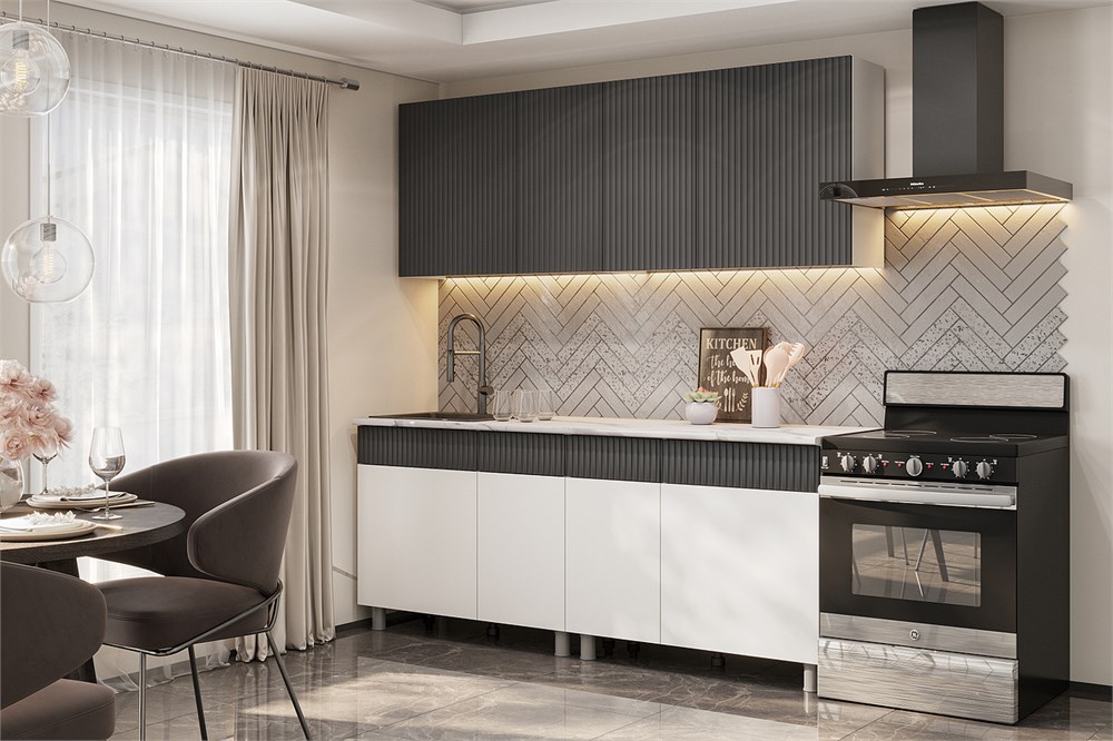 Готовая кухня «София» — это стильное и функциональное решение для современного интерьера. Комбинация фасадов в оттенках «Графит / Бланж» создаёт визуальный контраст и подчёркивает элегантность дизайна.