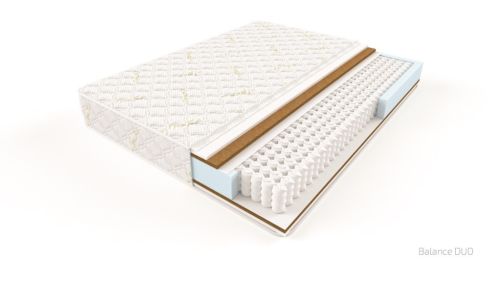 Матрас разносторонней жёсткости, одна сторона представляет собой сэндвич из кокосовой плиты и «умной» армирующей плиты Forplit - для комфортного сна, вторая сторона представляет собой удвоенный сэндвич первой стороны.