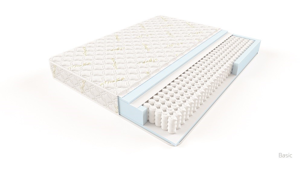 Матрас Basic средней жёсткости на основе армированного независимого пружинного блока. 500 пружин на спальное место, обеспечивают зональную поддержку отдыхающего. Высота 19-20 см. Нагрузка 100кг
