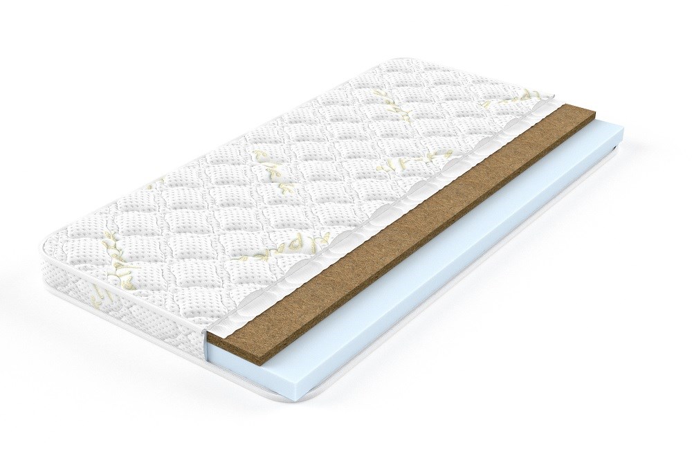 Матрас "Dambo" двусторонний беспружинный, средней жёсткости. В качестве наполнителя используется Ormofoam в сочетании с кокосовой койрой. Высота 7-8см. Нагрузка 70кг.