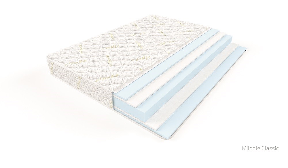 Матрас "Middle Сlassic" - великолепный беспружинный равносторонний, повышенной жесткости. Отлично подойдет для людей как с малым, так и с большим весом. В основе матраса - монолитный блок ormafoam высокой жесткости, каждая сторона которого армируется плитами Forplit. Для комфортного засыпания, каждая сторона матраса покрыта ОРМОfoam, которая придает мягкость и гарантирует комфортный сон. Высота 19-20см. Нагрузка 130кг.