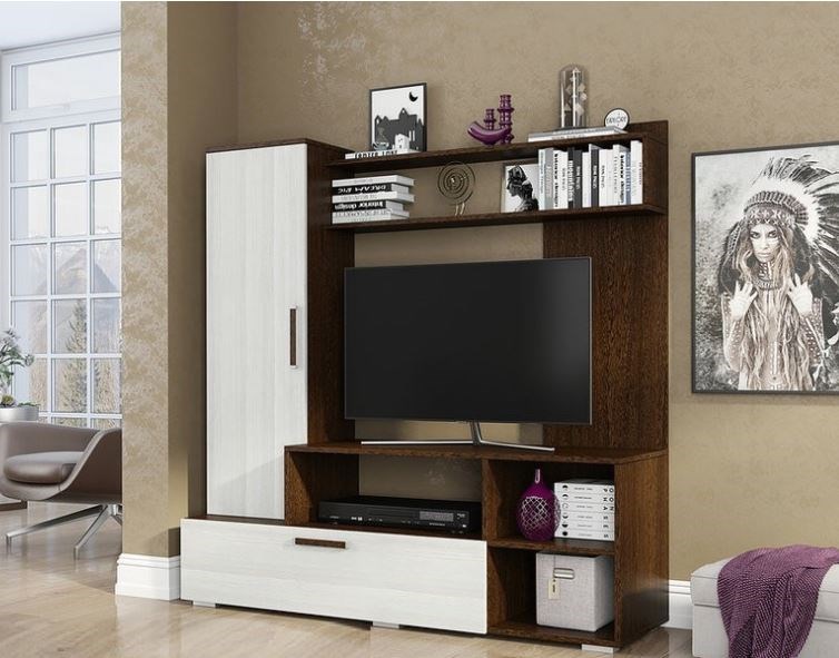 «Евро-2» сделает Вашу гостиную стильной и функциональной. Светлые фасады в сочетании с темным древесным корпусом, лаконичностью форм позволяют идеально вписать его в квартиру, оформленную в современном стиле. Такая комбинация цветов погружает в атмосферу спокойствия, домашнего уюта и тепла. Удачно продуманная система хранения оснащена закрытым шкафом для нужных вещей и открытыми полками для домашней акустики, ноутбука, а также для книг и изящных статуэток.