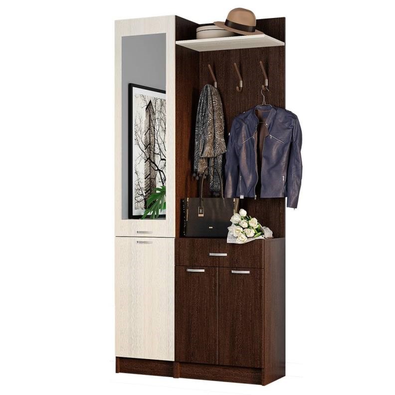 Несмотря на компактность, данная модель отличается своей эргономичностью и функциональностью, удобные и вместительные пенал и тумба позволят эффективно разместить вещи, сохранить в чистоте обувь и аксессуары. Открытые вешалки и полка являются оптимальным интерьерным решением для размещения верхней одежды и головных уборов.
