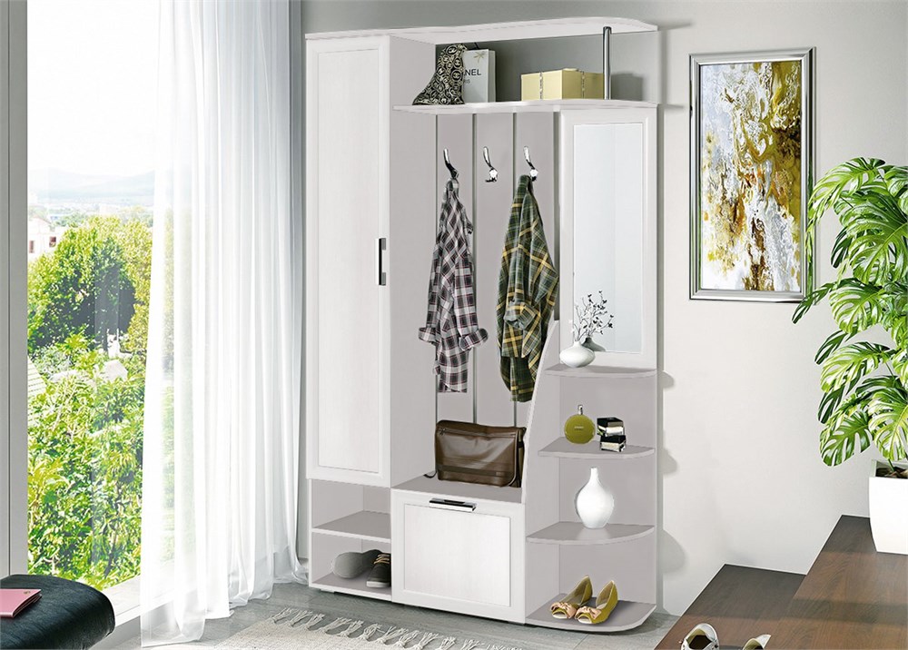 Вместительная и лаконичная модель прихожей «Ксения-2» позволит разместить большое количество вещей. Модель состоит из распашного шкафа, открытой зоны с крючками для одежды и полками для аксессуаров, а также отделения для обуви. Прихожая оснащена зеркалом, чтобы вы всегда могли оценить свой образ пред выходом.