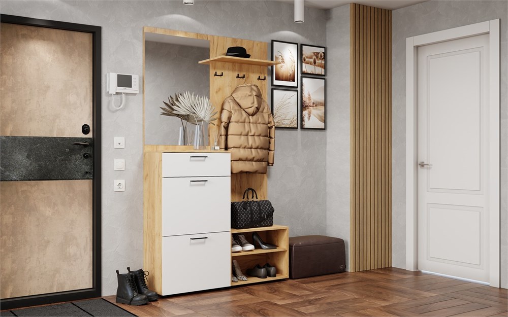 В прихожей Монтана нет ничего лишнего, только строгость и функциональность, присущие представителям классического стиля. Две тумбы, зеркало, удобная навесная вешалка – здесь есть все для того, чтобы уже на пороге вашего дома гости оказывались в атмосфере уюта и комфорта.