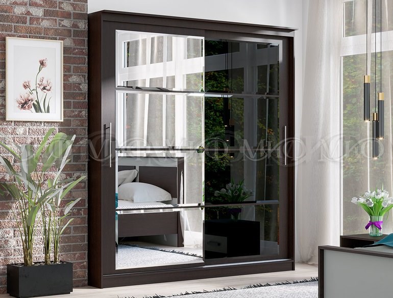 Элегантный - шкаф купе с двумя дверями и оригинальным дизайном. Наличие зеркал скрадывает габариты шкафа, зрительно расширяя помещение.