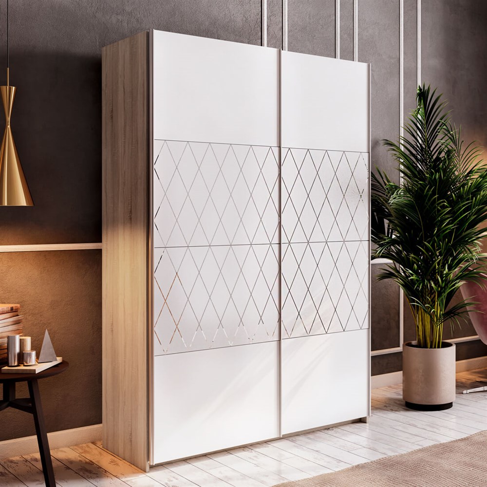 "Fortune 11" – белый цвет и зеркало является классическим сочетанием, делающим Ваш дом стильным и воздушным. Оригинальный геометрический дизайн на зеркалах, нанесенный при помощи пескоструйной обработки, добавляет многослойности восприятия помещения.