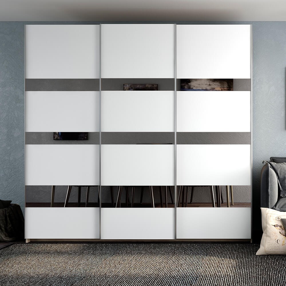 "Fortune 9" – идеально белая поверхность, пересеченная полосами тонированного зеркала. При этом, по низу фасада полоса становится шире для визуального увеличения пространства. «Fortune 9» наполнит Ваш дом интригующим очарованием.