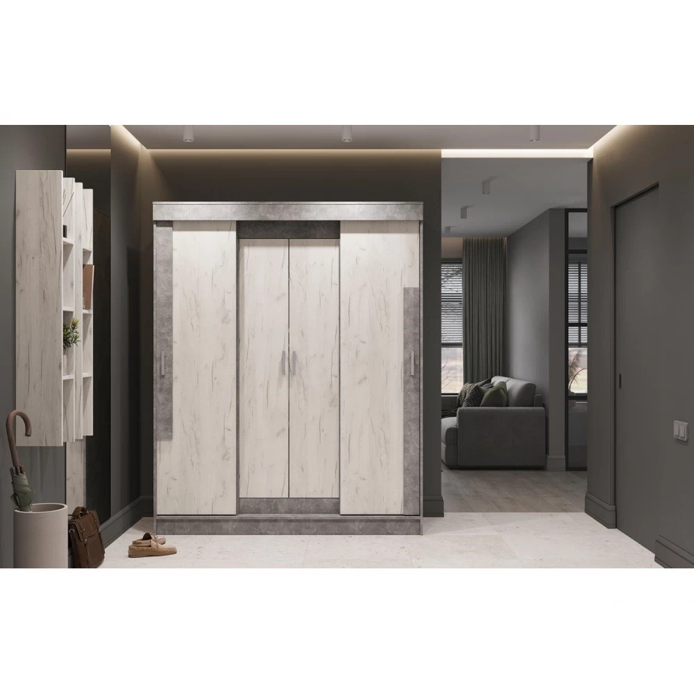 Этот вместительный шкаф предназначен для хранения вещей, белья и одежды и будет просто незаменим в спальной или детской комнате. Четыре створки в системе раздвижных дверей открывают доступ к различным секциям: здесь есть и широкие удобные полки для вещей, и целых две платяные секции с металлической штангой для плечиков с одеждой.