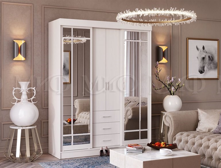 Лаконичный дизайн и стильный внешний вид четырехдверного шкафа-купе "Маэстро" удачно сочетаются с практичностью и надежностью.