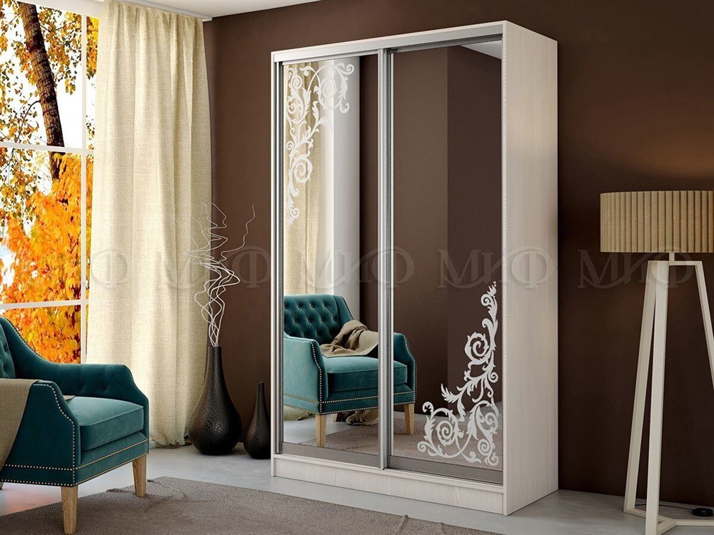 Зеркальные двери с рисунком освежат любой интерьер, а наполнение шкафа поразит вас своей функциональностью и вместительностью.