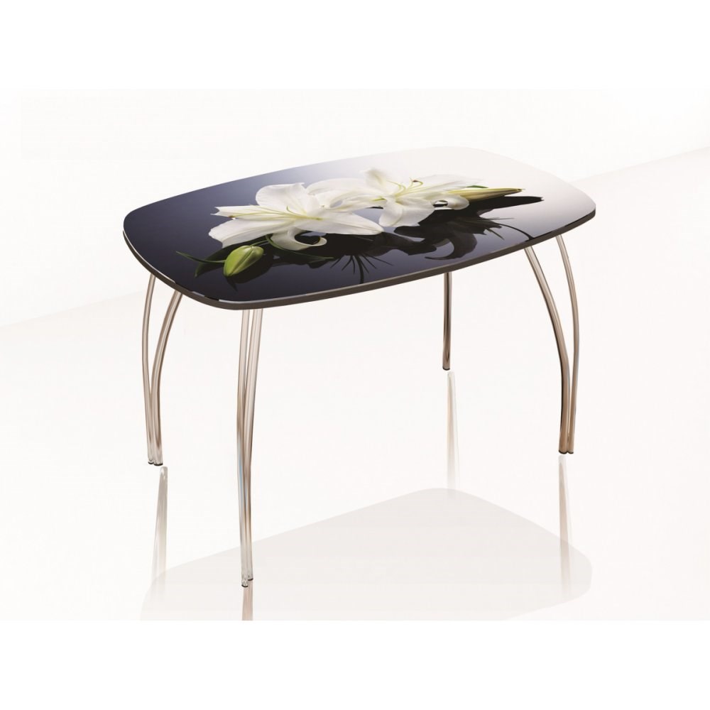 Стол обеденный "Агат Лилии" 100 см со стеклом (ТЭКС)