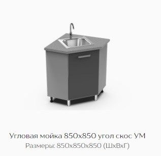 Угловая мойка 850х850 угол скос УМ "Нагано" (Тэкс)